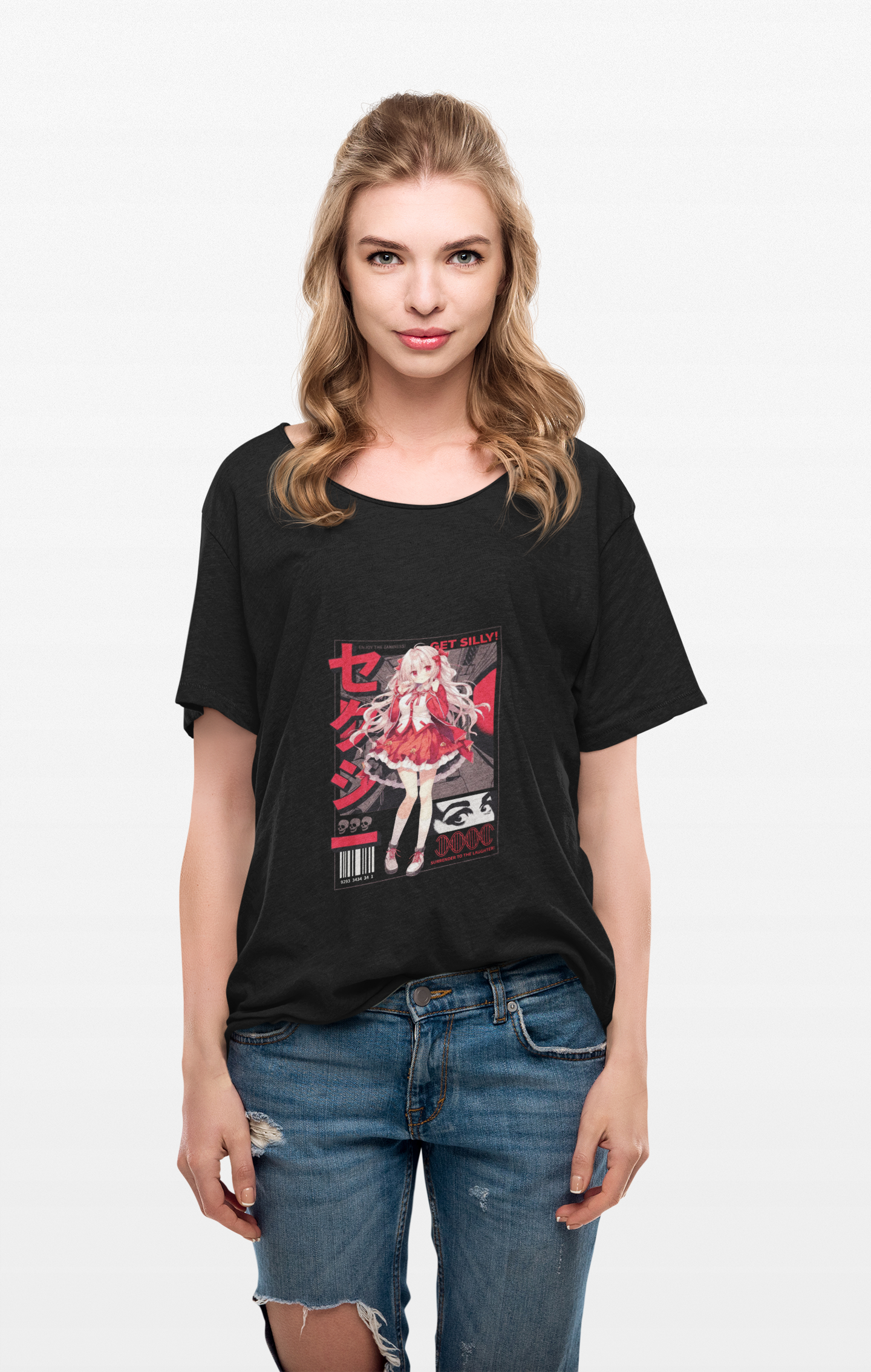 A soft, classic cotton tee printed with a bold anime-inspired illustration in red and black. The artwork places a stylized, energetic character front-and-center inside a graphic panel with Japanese katakana accents, layered textures, and retro halftone details. Wear it to bring a playful, streetwise anime vibe to everyday outfits — layered under a jacket for con nights or paired with relaxed jeans for casual hangouts. The medium-weight fabric and classic crew neckline keep the silhouette familiar and comfortable, while the crisp print holds up wash after wash.