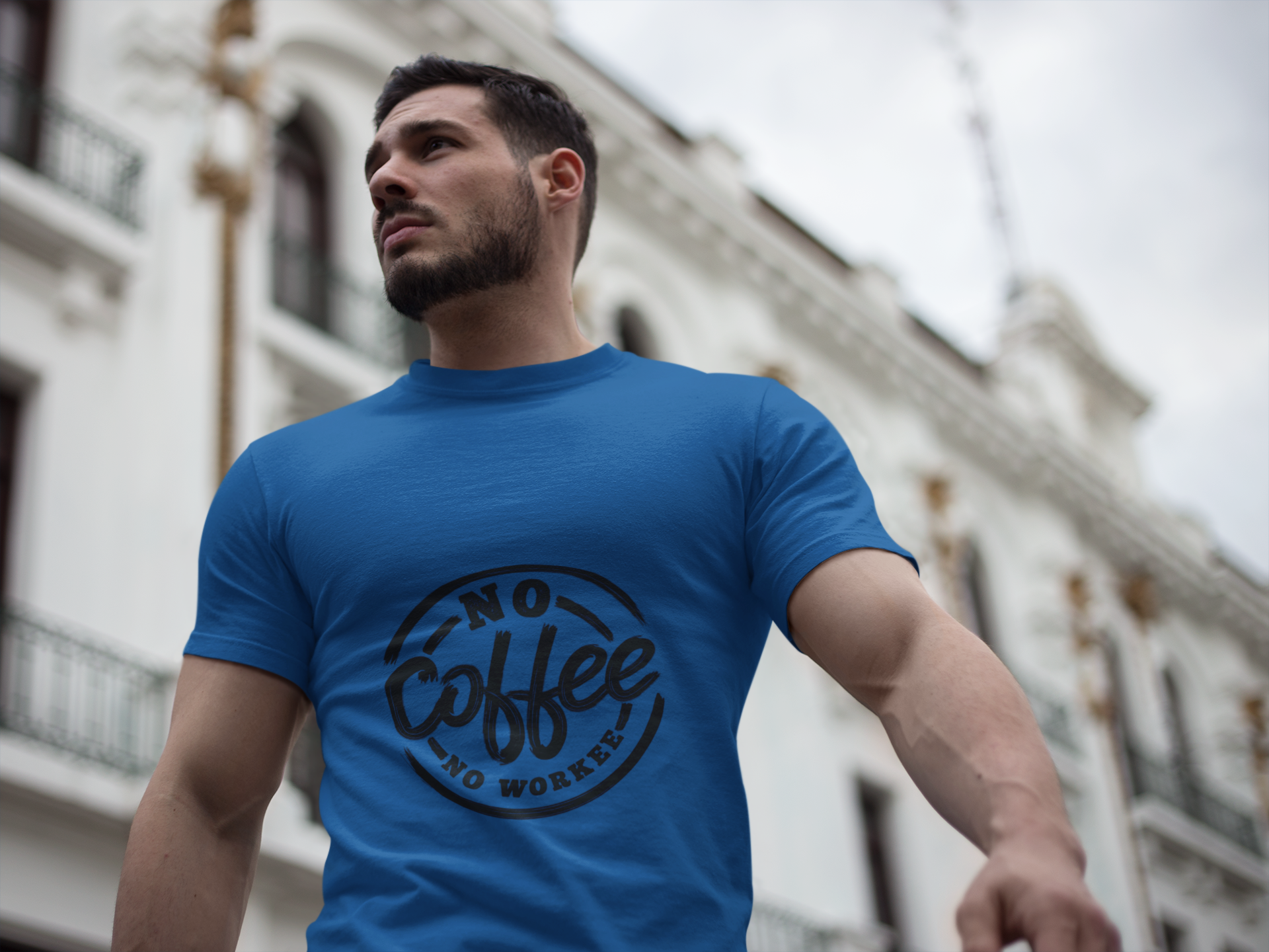 Slow-morning energy captured in ink. This classic cotton tee wears like your favorite go-to: soft, sturdy, and relaxed across the shoulders. A hand-lettered, circular badge reads “No Coffee No Workee” in a slightly weathered print — playful, honest, and loud enough to start conversations at the cafe counter. Throw it on with jeans and your favorite mug, or keep it on for low-key weekends when the kettle is doing all the heavy lifting. The shirt sits comfortably at the collar and drapes without clinging, so it feels casual and easy all day long.