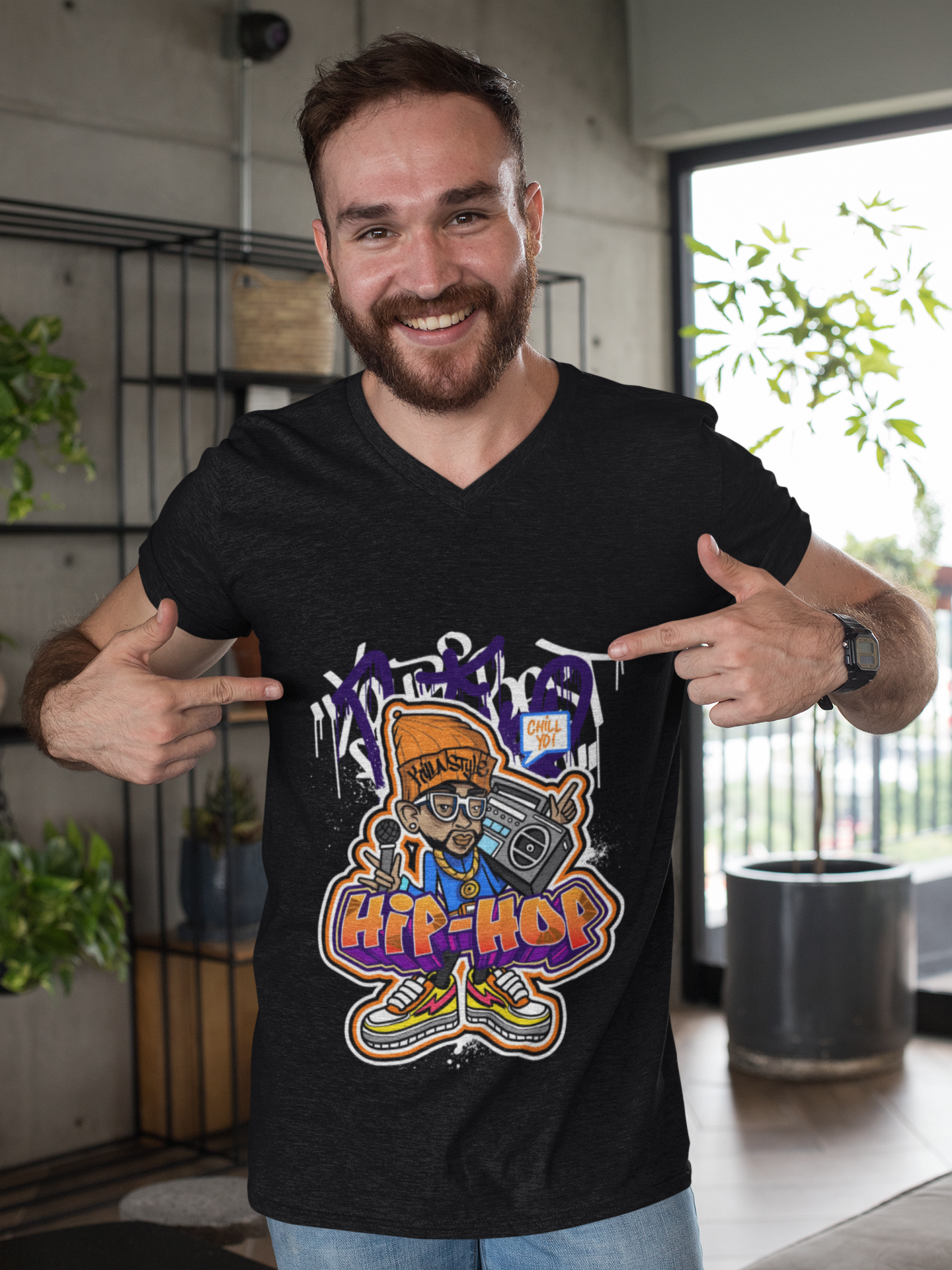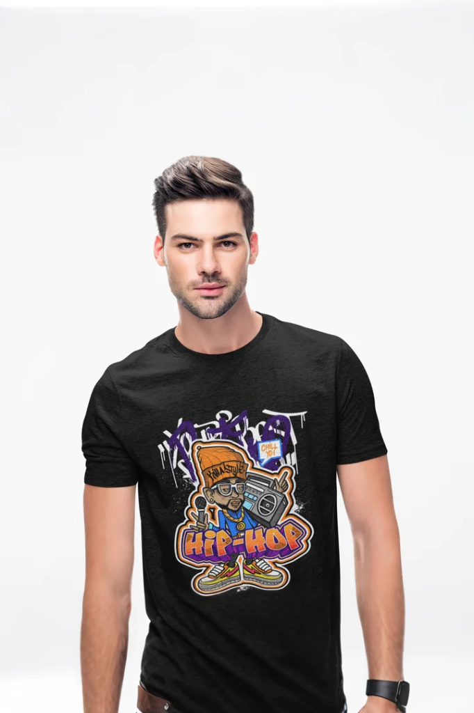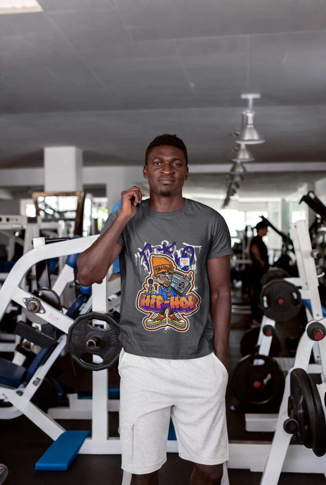 This tee speaks like a block-party anthem — loud, colorful, and full of personality. The bold graffiti-style artwork pops from the chest: a retro boombox, stylized sneakers, and energetic lettering that reads ‘Hip-Hop,’ all layered with paint drips and vibrant contrast. Wear it when you want to channel old-school swagger on city streets, at open-mic nights, or while spinning vinyl with friends. The shape is relaxed and familiar, so the design becomes the focus: an honest celebration of hip-hop culture that feels lived-in, not staged.