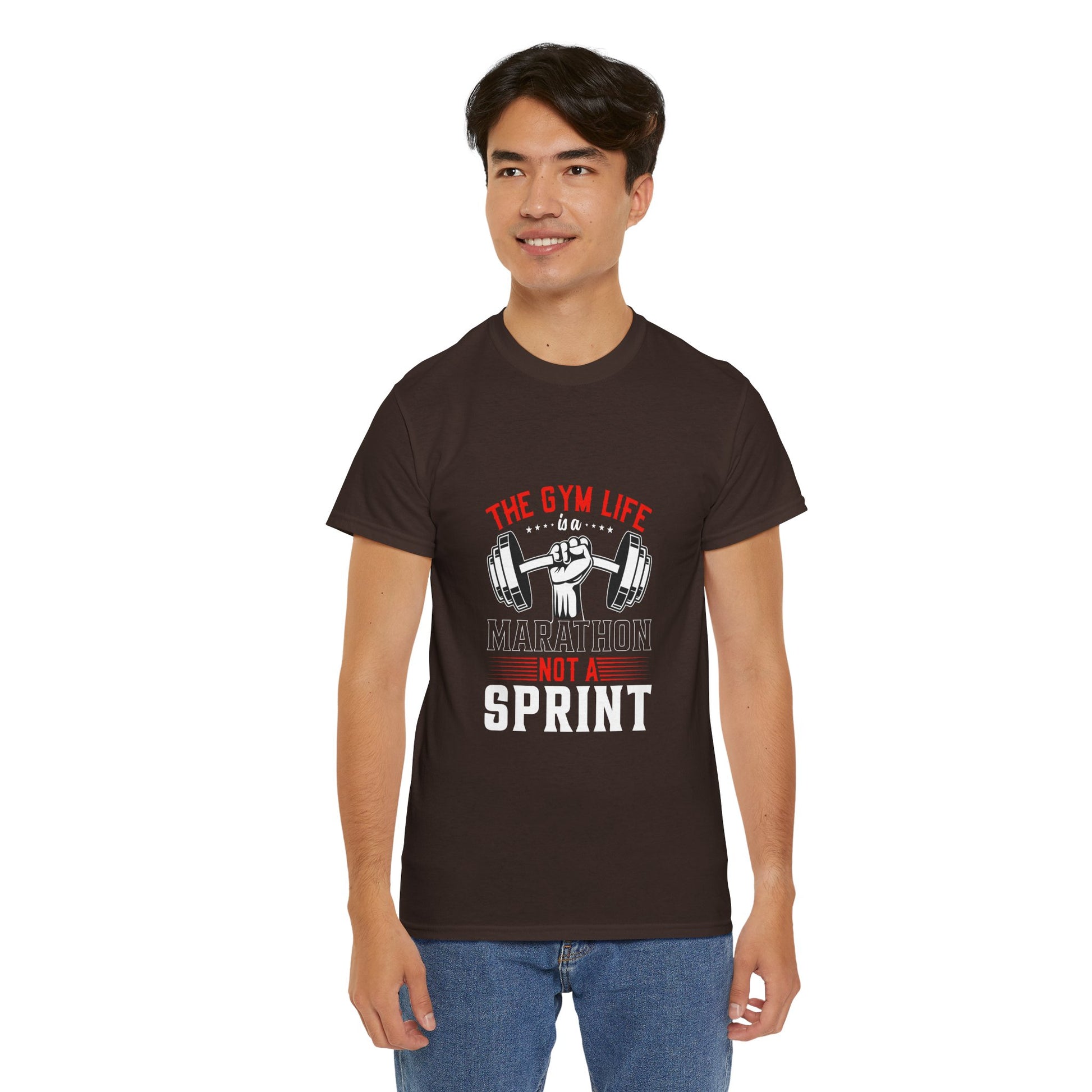 A crisp, no-nonsense gym tee that feels like a quietly confident training partner. The clean white canvas puts a bold, minimal graphic front and center: a clenched fist gripping a dumbbell with the short rallying line above — evoking grit, daily grind, and steady progress. It sits with a relaxed crew neckline and classic fit so you can move through warm-ups, heavy sets, or coffee runs without fuss. Breathable midweight cotton and a tear-away label keep the focus on comfort; the understated design reads like a badge for people who show up and lift. Wear it to the gym, to a pickup workout, or on rest days when you still want to signal that lifting is part of how you live.